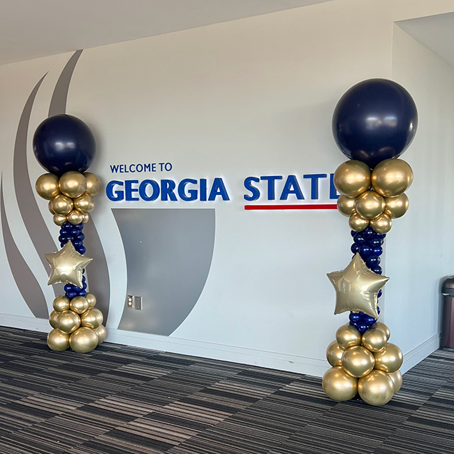 Custom balloon columns that add height, color, and bold impact to any celebration or grand opening.